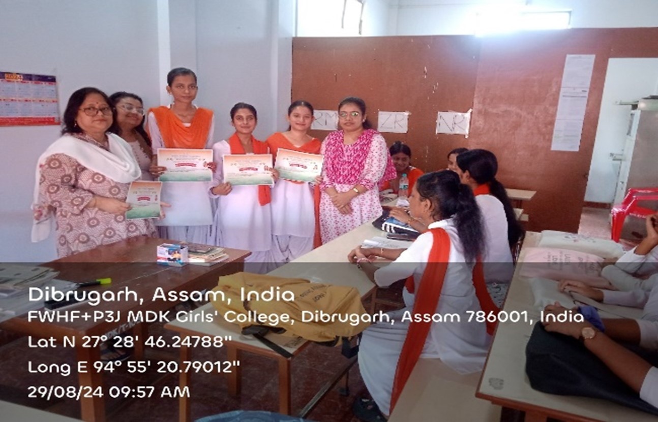 • Jeenat Parveen NSS Volunteer actively participated in the NSS special camp 2024on the theme ‘Channelizing Youth power for Nation Building’ conducted by the NSSUnit of MDKG College Dibrugarh from 29th February to 5th March 2024 at the adopted village Nagakhelia Gaon,Mohanaghat, Dibrugarh.