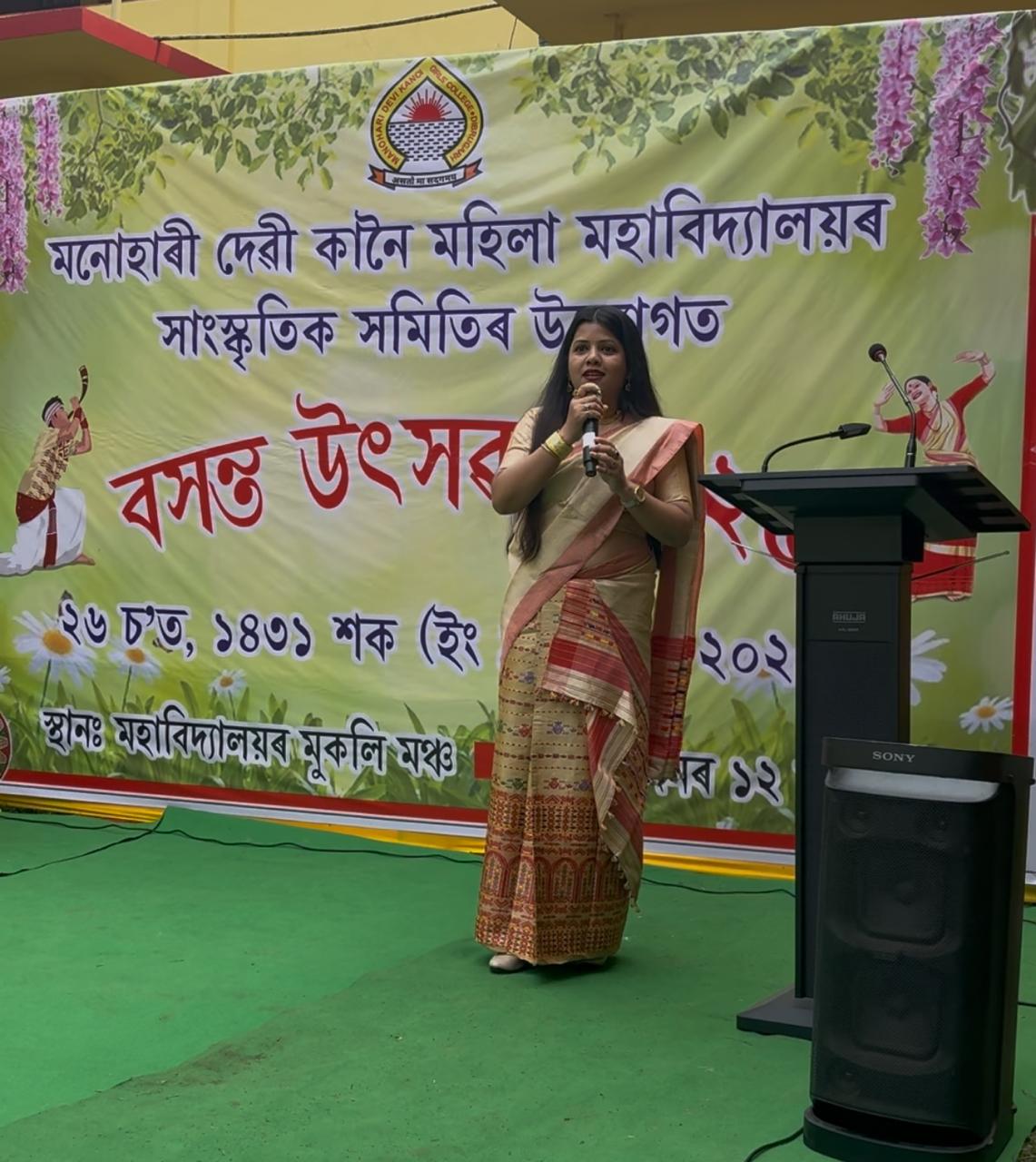মনোহাৰী দেৱী কানৈ মহিলা মহাবিদ্যালয়ৰ সাংস্কৃতিক সমিতিৰ উদ্যোগত আড়ম্বৰপূৰ্ণ ভাৱে ৯ এপ্ৰিল , ২০২৫ তাৰিখে বসন্ত উৎসৱ উদযাপন কৰা হয় ৷ মনোহাৰী পৰিয়ালৰ সকলো সদস্যই এই অনুষ্ঠানত সক্ৰিয়ভাৱে অংশগ্ৰহণ কৰি মুখৰিত কৰি তোলে ৷